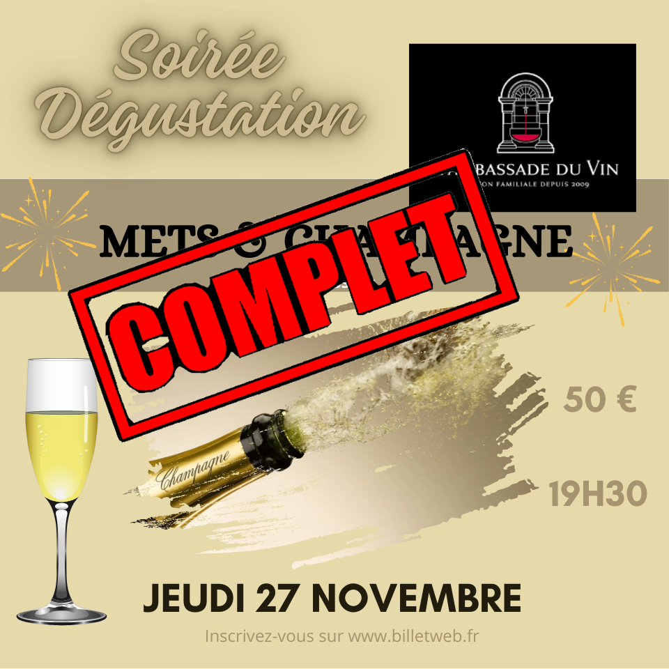 A vos agendas ! La prochaine soirée dégustation arrive ! Pour terminer l'année en beauté et sur de fines bulles Une occasion unique de découvrir des champagnes avec de délicieux mets !