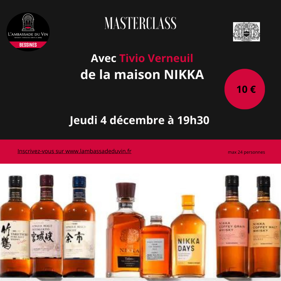 A vos agendas ! Soirée masterclass whisky NIKKA! L' occasion unique de découvrir la gamme Nikka avec la présence du brand ambassadeur de la distillerie France: Mr Tivio Verneuil
