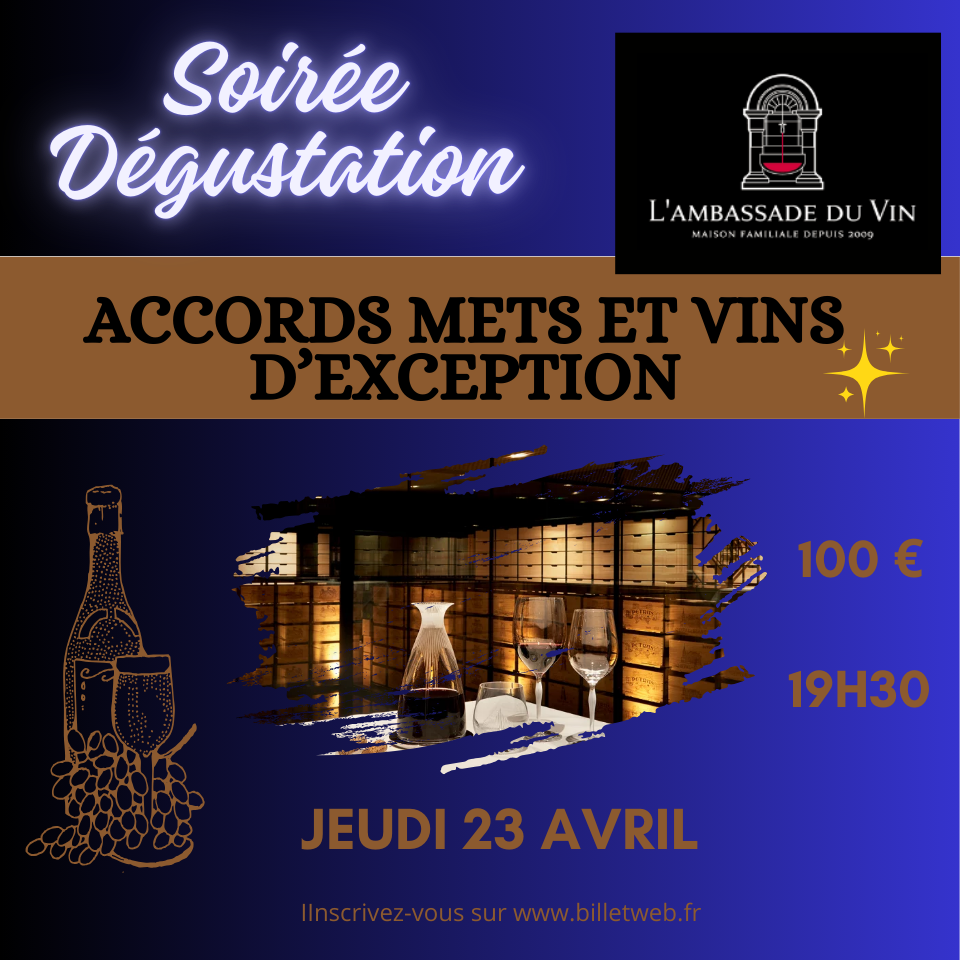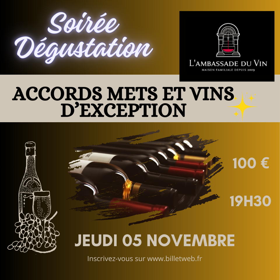 A vos agendas ! La prochaine soirée dégustation arrive ! Une occasion unique de découvrir des vins soigneusement sélectionnés accompagnés de mets raffinés créés pour sublimer chaque saveur.