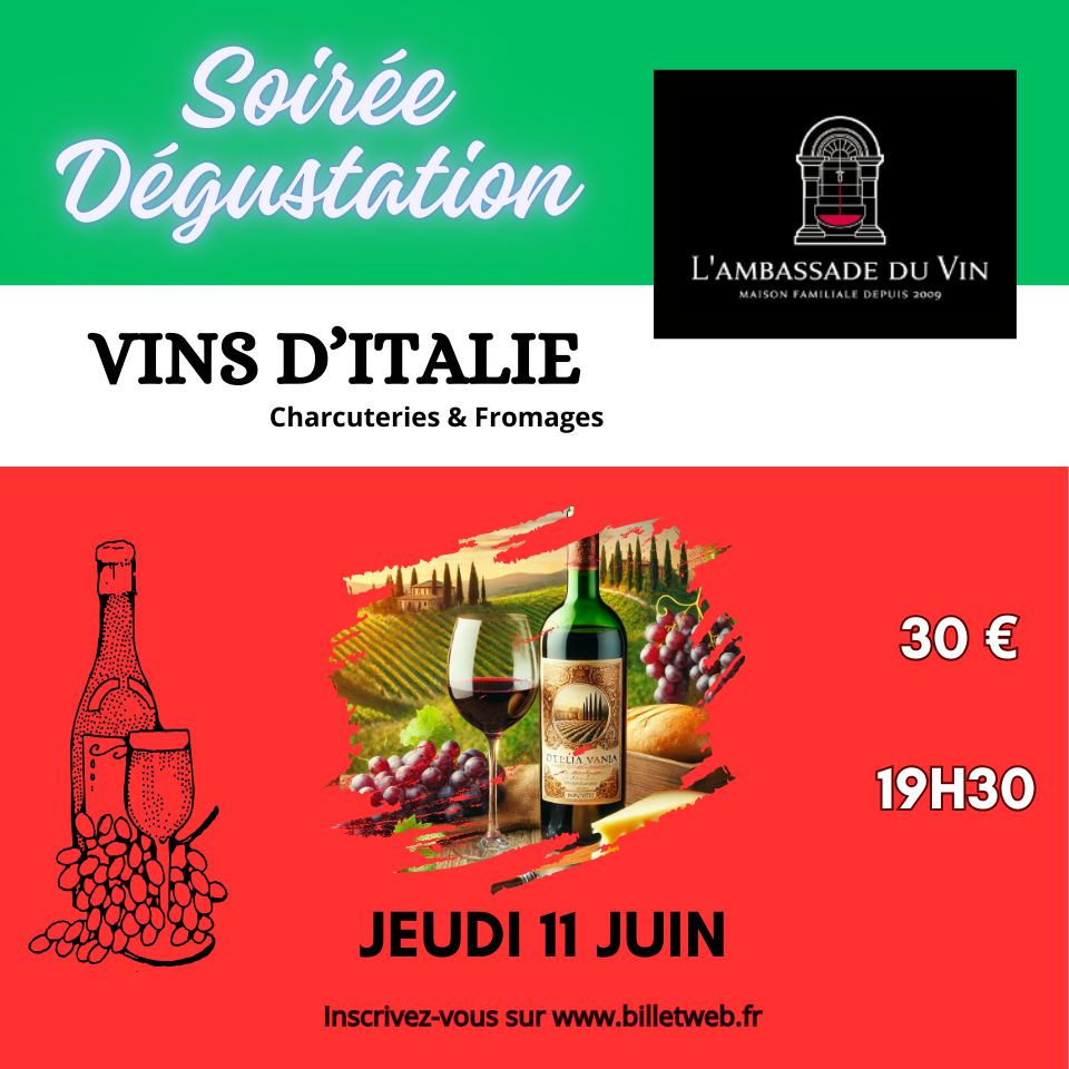 Préparez-vous à un voyage au cœur des vignobles italiens ! Cette soirée vous invite à savourer des vins d'Italie, sélectionnés pour vous faire explorer toute la richesse et l'élégance de la viticulture italienne.