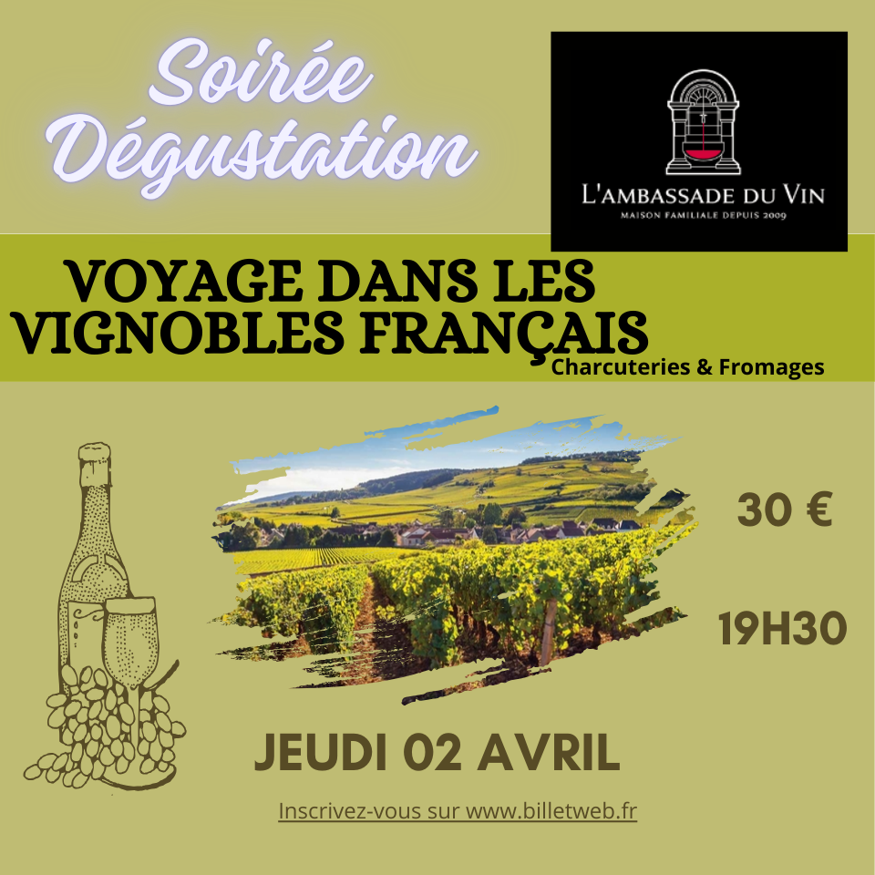 Préparez-vous pour une aventure sensorielle inédite à travers les plus beaux terroirs de France ! Cette soirée dégustation vous fera voyager d’un vignoble à l’autre, à la découverte de cépages et de crus emblématiques.